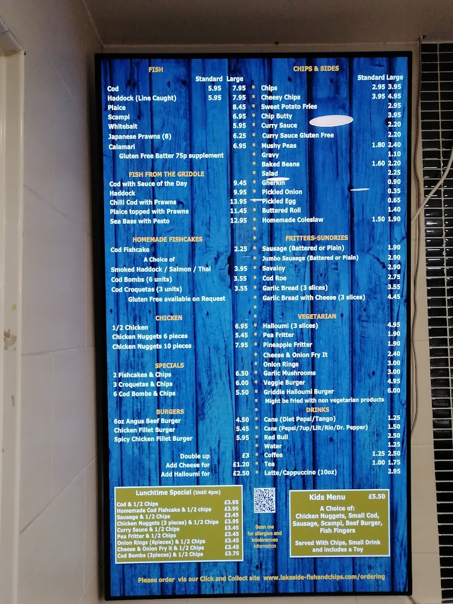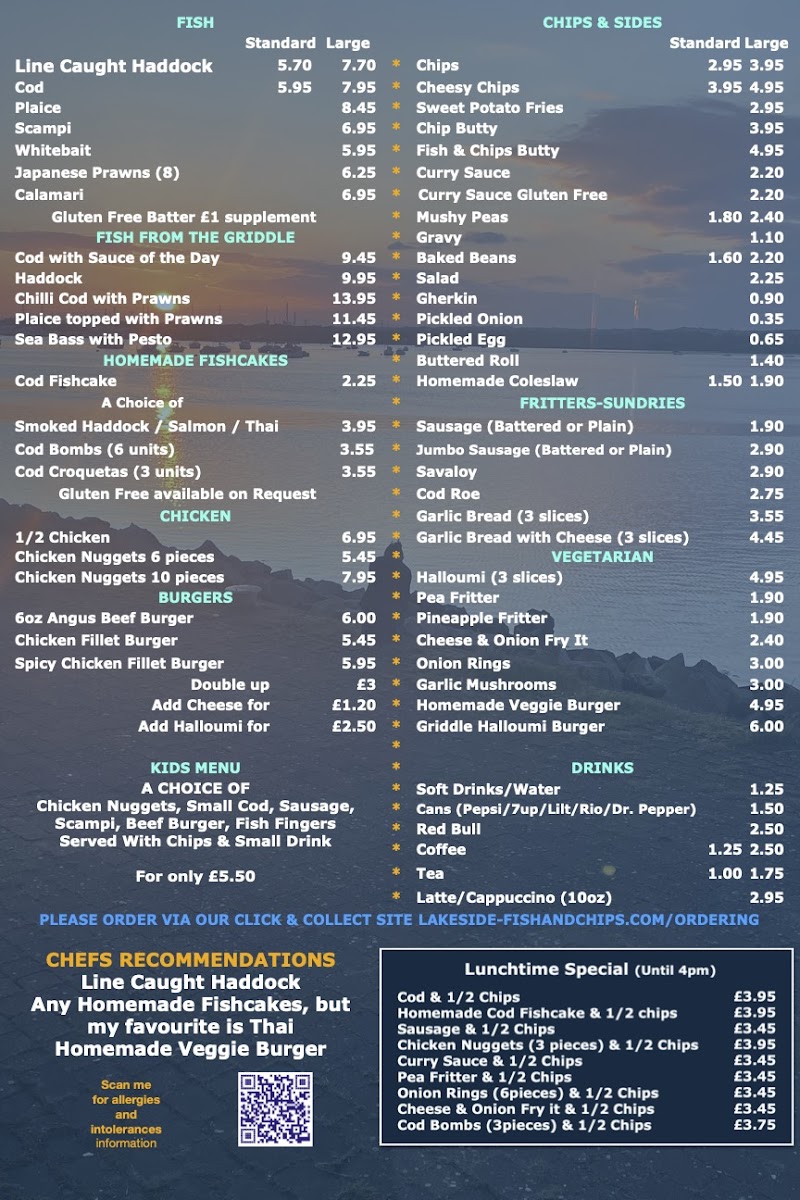 Overall, Lakeside Fish & Chips stands out not only for its tasty offerings but also for the atmosphere it provides. If you're ever in the area, be sure to stop by for a satisfying meal that combines traditional British comfort with a touch of local charm.
