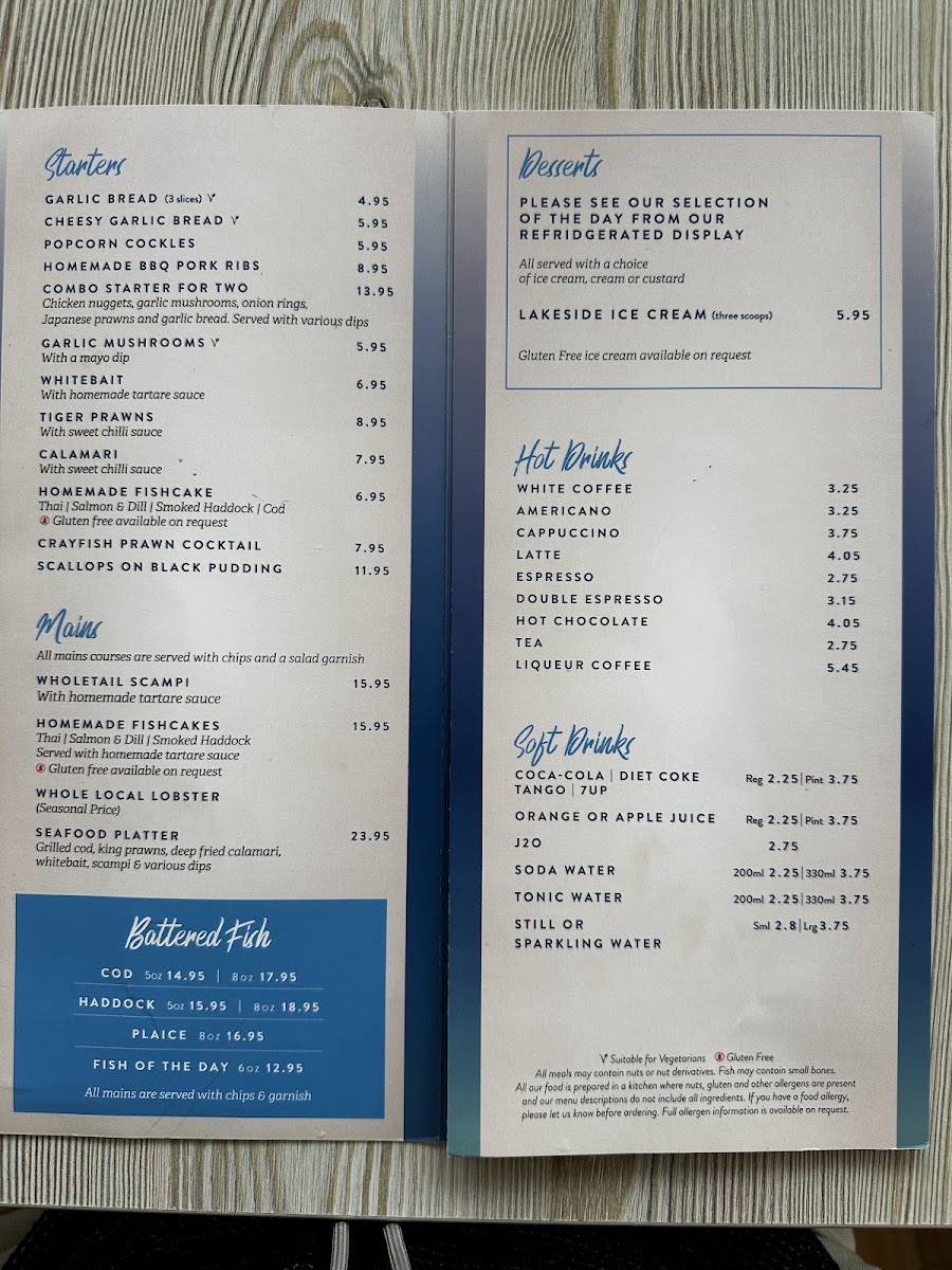 The Lakeside Fish & Chips Menu features a selection of traditional favorites. The fish is always fresh and coated in a crispy batter that holds its crunch while allowing the tender fish to shine through. Whether you opt for the classic haddock or cod, you’ll find that each portion is generously sized, making it a hearty meal. The chips are thick-cut and golden, perfectly complementing the rich, flaky fish.